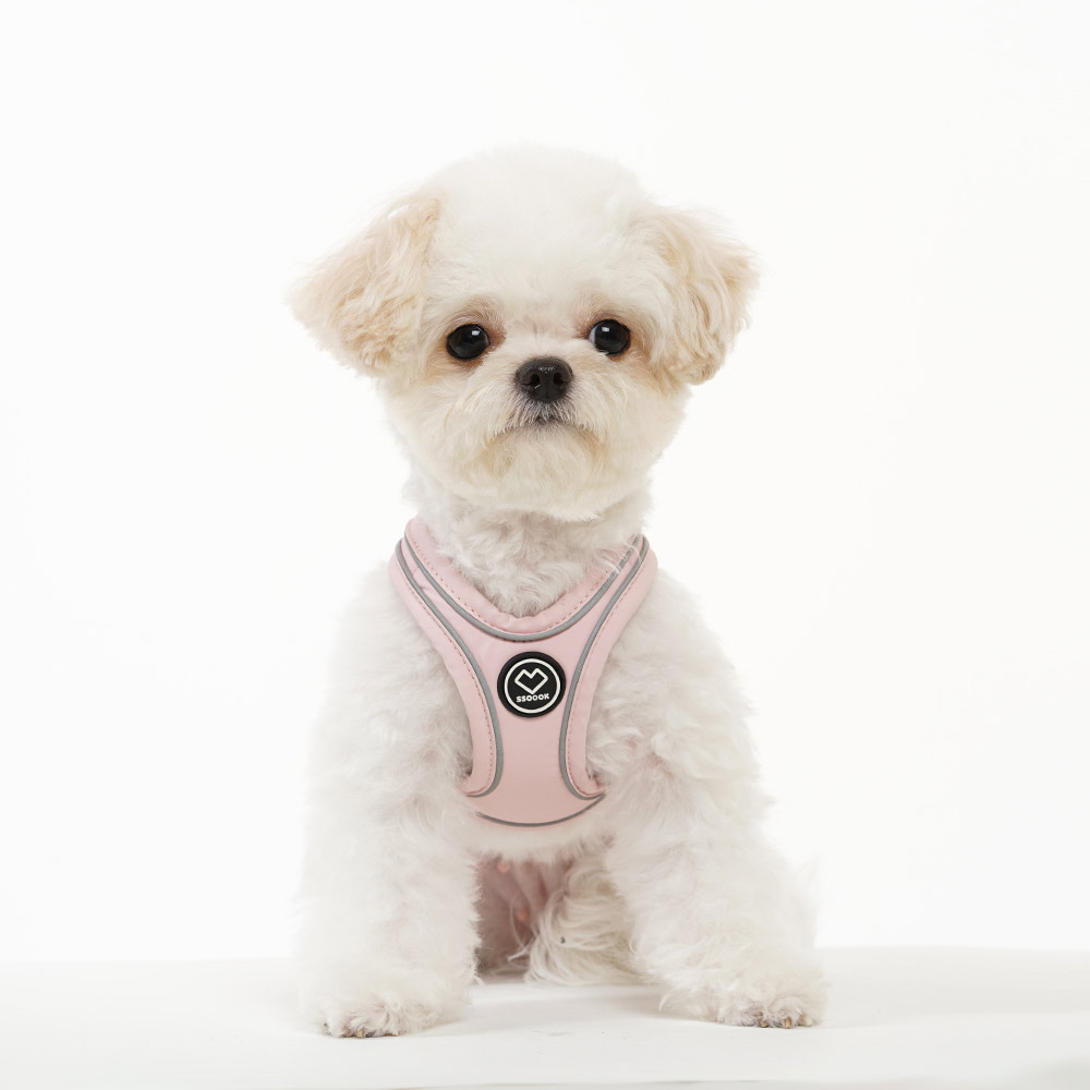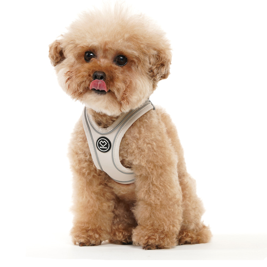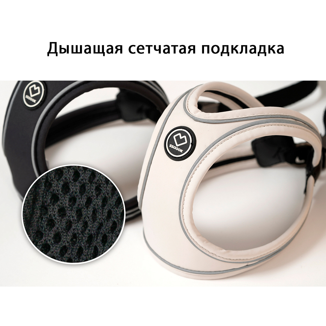 Шлейка плотно прилегает к телу, не сдавливая шею и грудь.