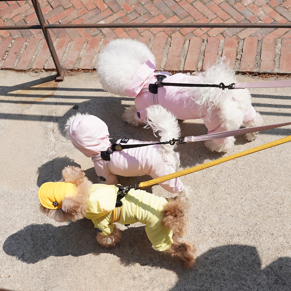 Шлейка подходит для прогулок поверх одежды, поэтому её удобно использовать в холодное время года, когда собака носит комбинезон или свитер.