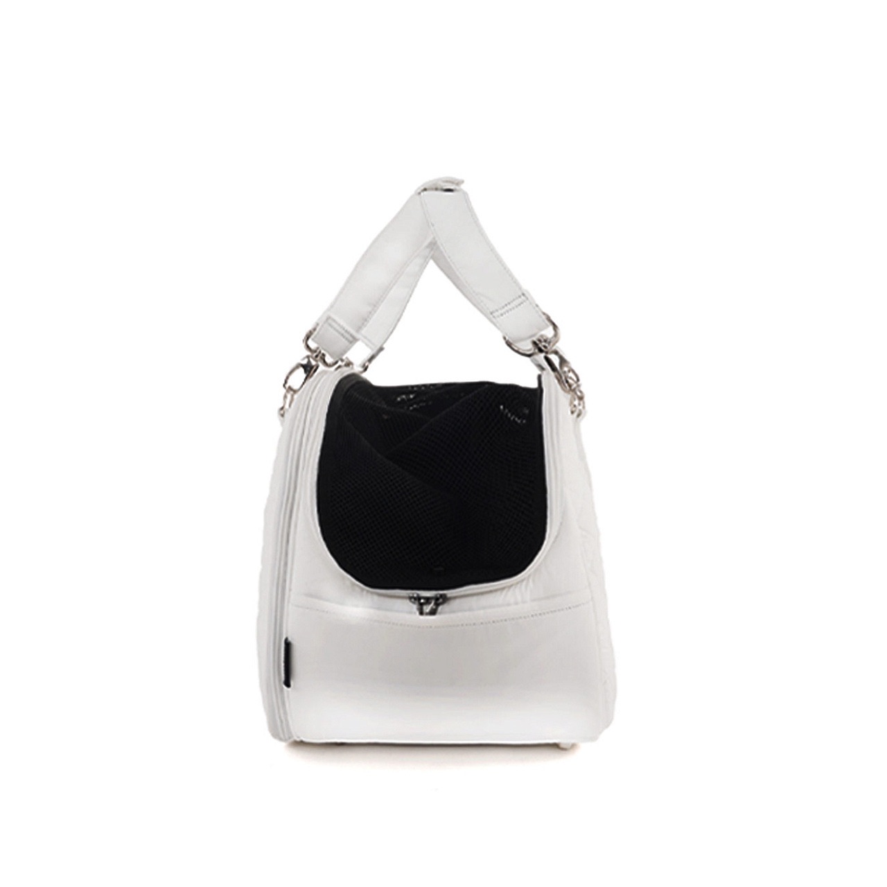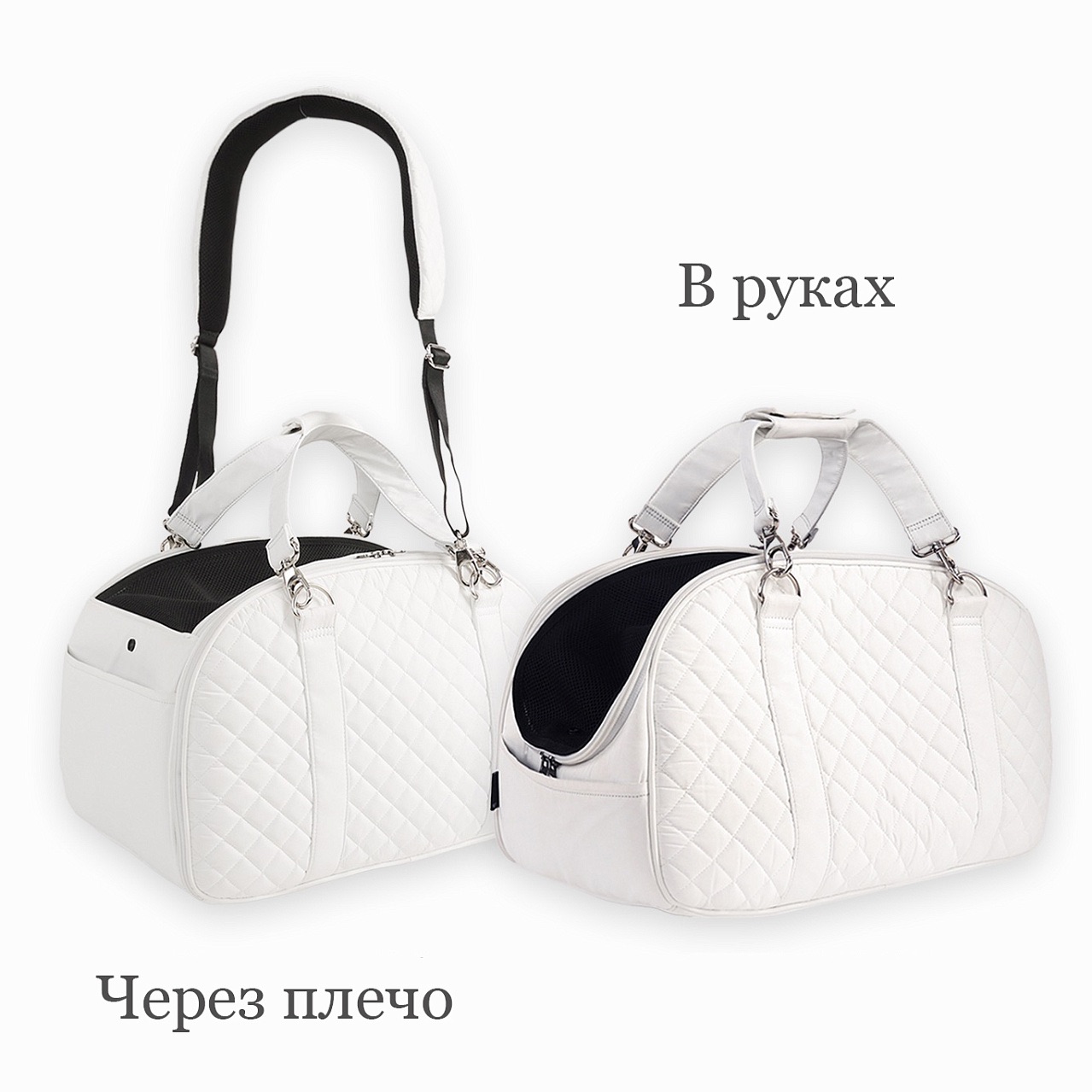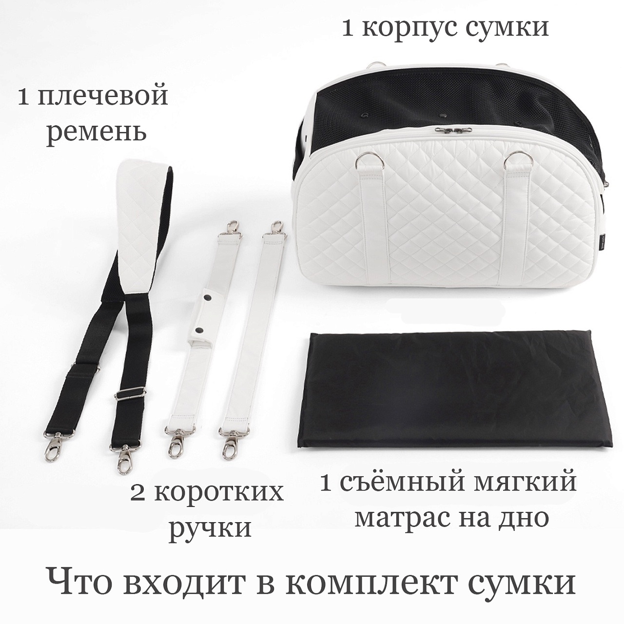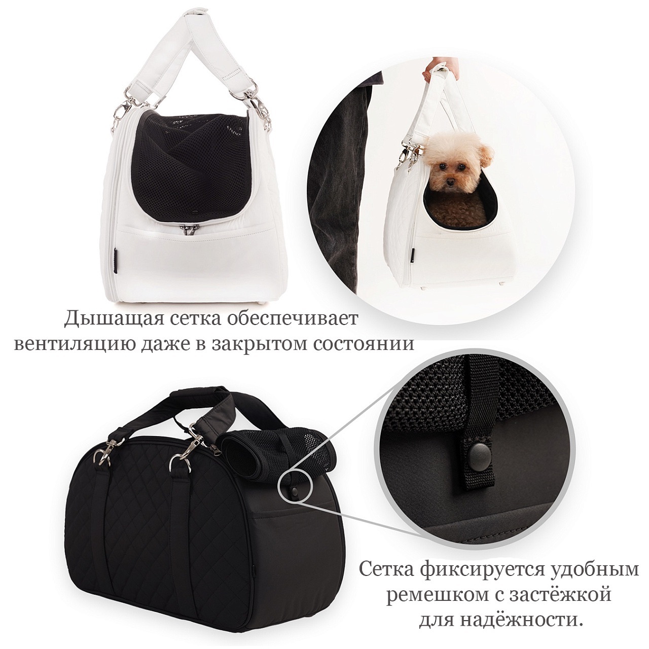 Сумка выполнена из двух отделений - одно для собачки, второе для ваших личных вещей - например ноутбука, или пеленок для собак, поводка, любимой игрушки, дорожной миски для собак.