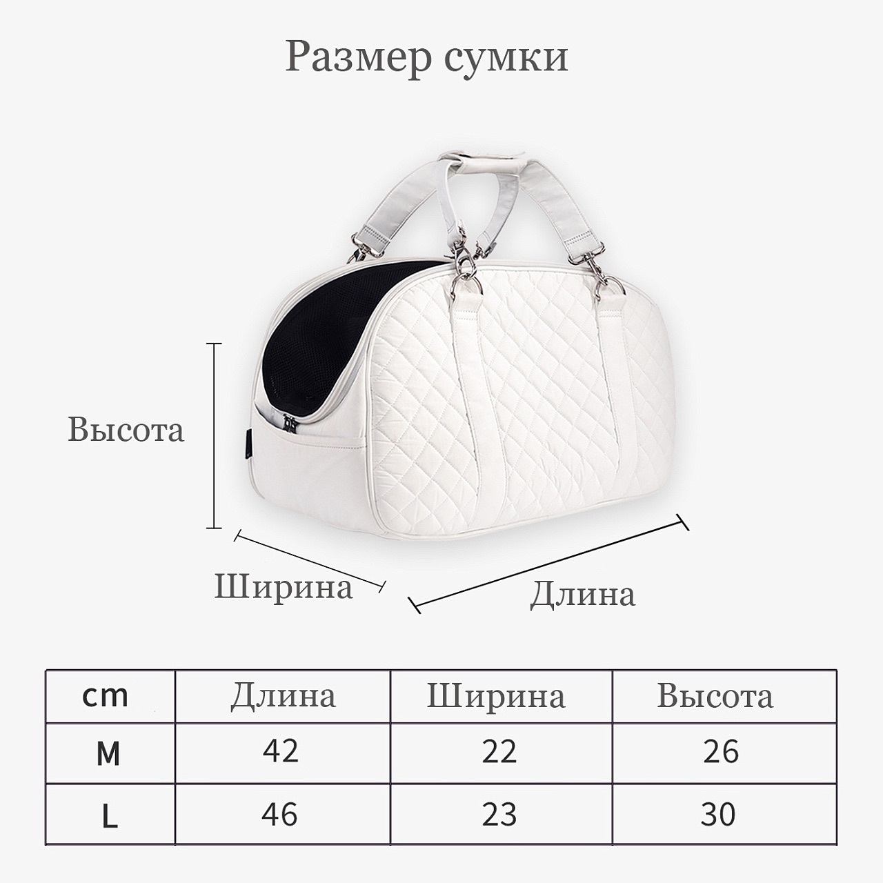 L - 46х23 см, высота 30 см (для собак от 4 кг до 5 кг или двух маленьких собак)