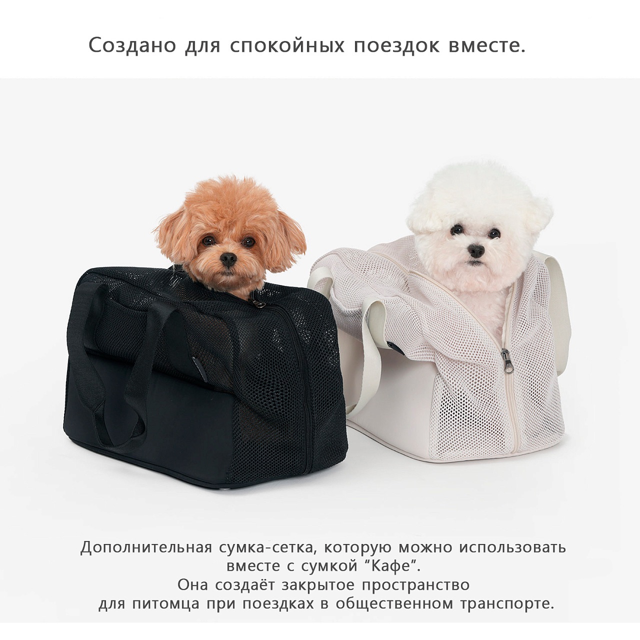 Дополнительная сумка-сетка создана для использования вместе с сумкой «КАФЕ», а также может применяться как самостоятельная переноска. Она обеспечивает питомцу закрытое, безопасное и комфортное пространство во время поездок по городу и путешествий.