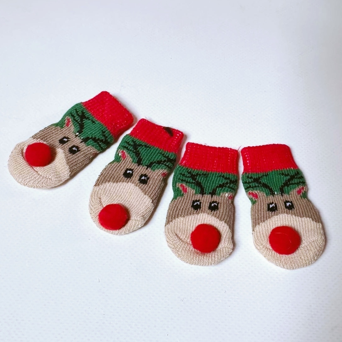 Удобные носочки для маленьких собачек с мордашкой оленя и носиком-помпончиком.